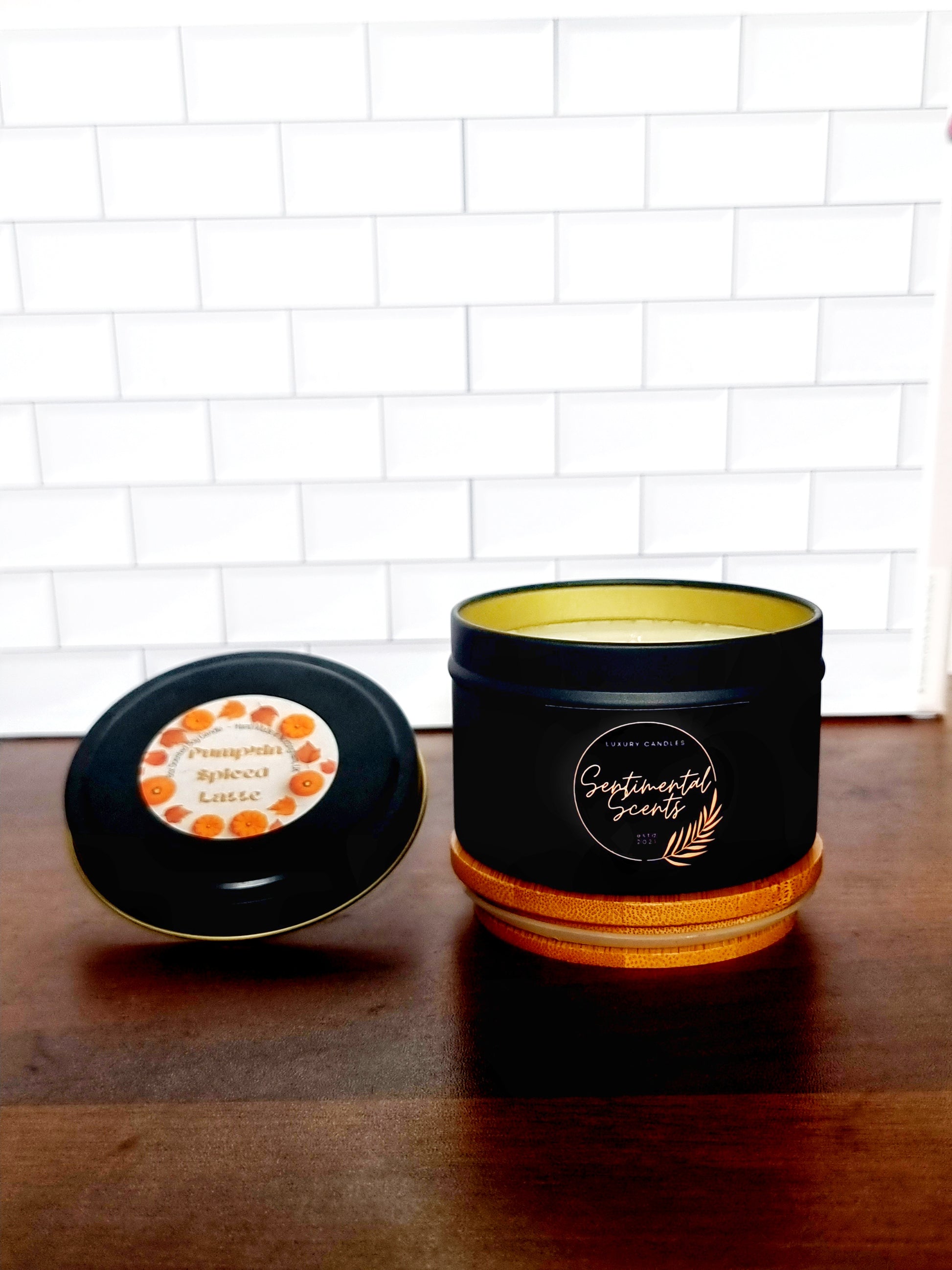 Pumpkin Spiced Latte Scented Matte Black Candle Tin